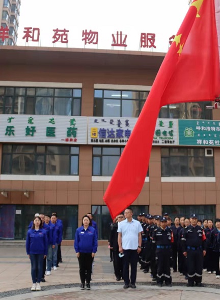 9月27日上午,城發(fā)物業(yè)公司黨支部聯(lián)合呼市住房保障和房屋管理局經(jīng)營管理處祥和苑公租房管理站在祥和苑公租房小區(qū)舉行“我和我的祖國——升國旗、唱國歌”獻(xiàn)禮中華人民共和國成立72周年活動(dòng)。黨員、干部、職工共40余人參加此次活動(dòng)。