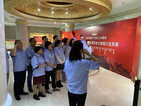 在博物院二樓展廳內(nèi),黨支部書記郭依群同志率先帶領(lǐng)大家重溫入黨誓詞,銘記初心使命,并齊聲高唱《沒有共產(chǎn)黨就沒有新中國》紅歌,表達(dá)愛國愛黨的熱烈情懷。隨后在講解員的帶領(lǐng)下大家認(rèn)真聆聽學(xué)習(xí)了革命先輩的光輝事跡,一幅幅生動(dòng)的照片、一件件厚重的實(shí)物、一個(gè)個(gè)感人的故事,無不再現(xiàn)了中國共產(chǎn)黨人百年奮斗的不屈精神和輝煌成就。