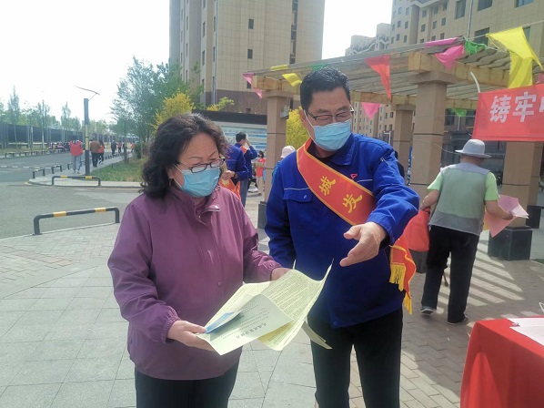 活動(dòng)現(xiàn)場(chǎng),黨支部書記娜仁按照既定方案,帶領(lǐng)大家分頭行動(dòng)起來。“民族政策宣傳組”的隊(duì)員們一邊向過往的居民發(fā)放黨的民族理論和民族政策宣傳單,一邊做好現(xiàn)場(chǎng)宣傳講解,重點(diǎn)宣傳了黨的民族政策的主要內(nèi)容、民族平等政策的內(nèi)涵、民族區(qū)域自治政策的內(nèi)涵、現(xiàn)階段我國(guó)民族工作的主題、現(xiàn)階段發(fā)展少數(shù)民族經(jīng)濟(jì)的方針、民族團(tuán)結(jié)關(guān)系的“三個(gè)離不開”內(nèi)容、民族團(tuán)結(jié)工作的“四個(gè)維護(hù)”內(nèi)容及習(xí)近平總書記對(duì)各民族提出的“五個(gè)認(rèn)同”等內(nèi)容;講解了如何理解“中華民族共同體意識(shí)”、如何理解“推廣普及國(guó)家通用語言文字教育”等內(nèi)容。“安全防火宣傳組”的隊(duì)員們分三組入樓開展安全防火宣傳檢查,重點(diǎn)對(duì)樓道內(nèi)個(gè)別存在的亂堆放雜物、亂停非機(jī)動(dòng)車及擅自占用、堵塞消防通道的住戶張貼清理通知單、宣傳將樓道占為己用的重大安全隱患,并告知業(yè)主限期自行清理,切實(shí)保障廣大業(yè)主的居住安全和環(huán)境衛(wèi)生。