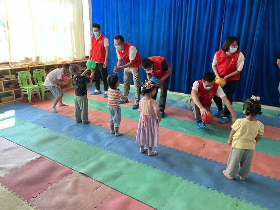 活動(dòng)現(xiàn)場(chǎng),愛(ài)心小分隊(duì)一行將精心準(zhǔn)備的慰問(wèn)品送到孩子們的手中,與他們親切交談,參觀孩子們學(xué)習(xí)、生活的環(huán)境,詳細(xì)了解孩子們的學(xué)習(xí)、生活狀況。隨后,愛(ài)心小分隊(duì)與孩子們進(jìn)行了搶板凳、接皮球等互動(dòng)游戲,在歡聲笑語(yǔ)中,志愿者與孩子們結(jié)下了深厚的友誼。