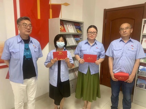 胡日查同志宣讀了集團(tuán)公司黨委審批通過齊樂、張學(xué)敏兩位同志成為中國共產(chǎn)黨預(yù)備黨員,莊永飛、劉濤兩位同志按期轉(zhuǎn)為中國共產(chǎn)黨正式黨員相關(guān)事宜,并向齊樂、張學(xué)敏兩同志表示了衷心祝賀,要求她們在今后的學(xué)習(xí)和工作中不斷用實際行動踐行初心使命,以黨員的標(biāo)準(zhǔn)嚴(yán)格要求自己,時刻保持共產(chǎn)黨員的良好形象、先進(jìn)本色。隨后,胡日查同志帶領(lǐng)齊樂、張學(xué)敏兩位同志和其他全體黨員同志高舉右手,莊嚴(yán)宣誓,再一次重溫入黨誓詞,重憶入黨初心。齊樂、張學(xué)敏兩位同志表示,作為新時代的青年,將牢記黨的宗旨,牢記入黨初心和使命,腳踏實地做好本職工作,以飽滿的熱情和昂揚(yáng)的斗志投入到工作中去。